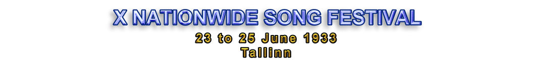 The tenth nationwide song festival was a jubilee in festival history: special coins and stamps were issued and concerts and theatre performances were organised to celebrate. The term for special and mixed choirs came into use and the repertoire was differentiated accordingly. Female choirs performed as a separate choir type for the first time. The new technological achievement of the day was included in festival preparations: performances of the best Tallinn choirs were broadcast.